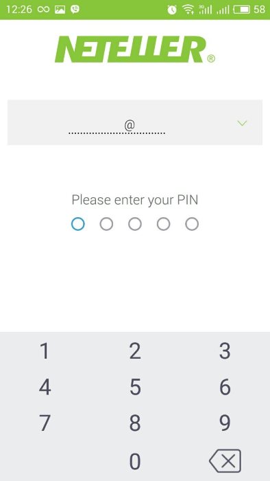 Enter your NETELLER email and 5-digit PIN code (this one you will have to enter every time you log in to the app).