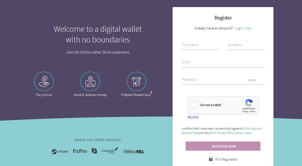 If you already have a Skrill account, proceed to step 2 and complete the form.