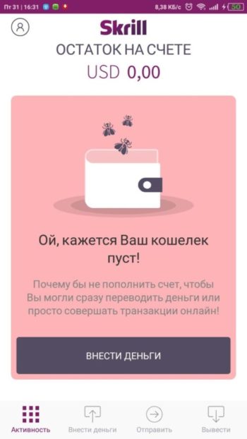 However, there is one thing you should know. To pass verification in Skril mobile app you need to deposit at least $10. After that a window to scan your documents will appear. Let's review it step by step: