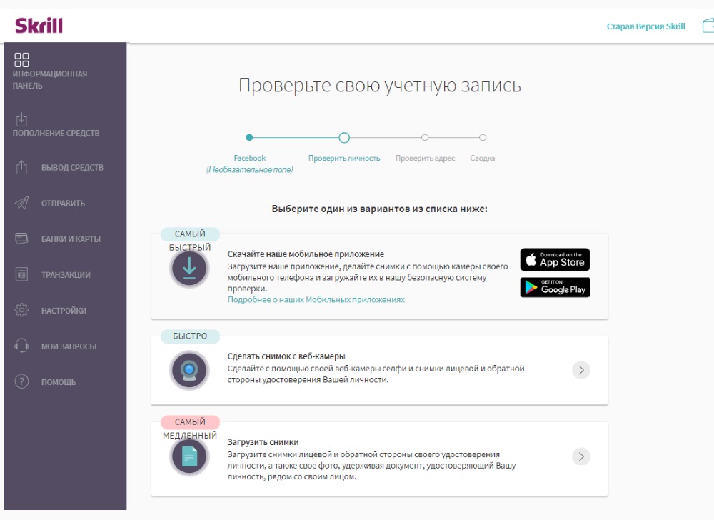 The fastest way to verify Skrill account is to use its mobile app. You need to pass 3 stages: identity verification, address verification, and account ownership (selfie).