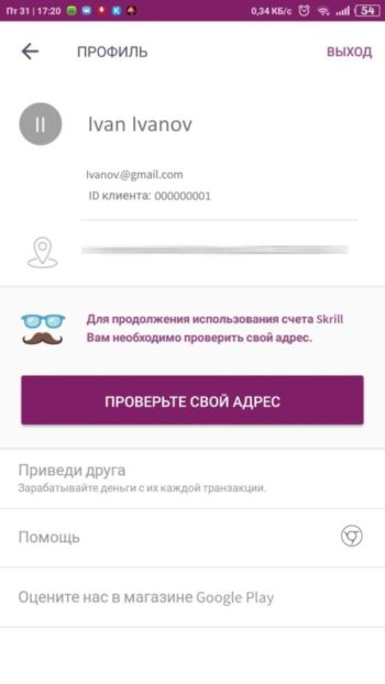 — address, which you indicated while registering your Skrill account;